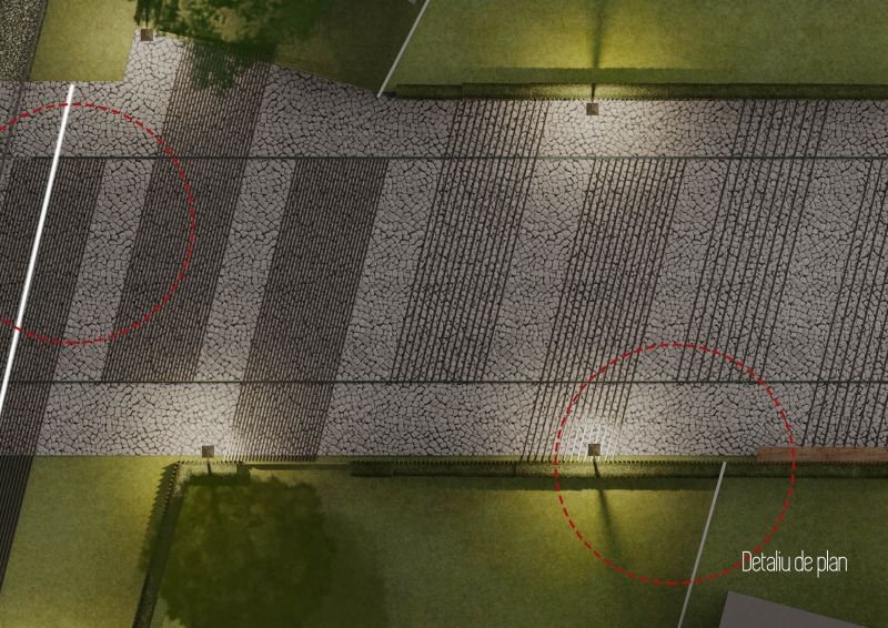Vom folosi piatră, pământ, lemn și metal. De exemplu, dacă în zona din Parc vom avea pământ stabilizat, în momentul în care facem trecerea peste Bd. Brâncuși o să o facem cu piatră cubică, cu inserții de pământ stabilizat. Vrem să creăm un cadru nu atât de divers și atât de disturbant, ca Axa să fie prioritară și nu celelalte elemente”.