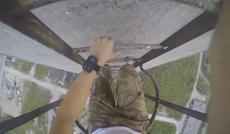 Un tânăr s-a filmat în timp ce se plimba pe marginea turnului CET Târgu-Jiu. Imaginile în care își arată curajul dus la extrem au fost surprinse de o cameră montată pe capul său, iar ulterior au fost postate pe internet, în această lună, reușind să strângă deja sute de vizualizări.