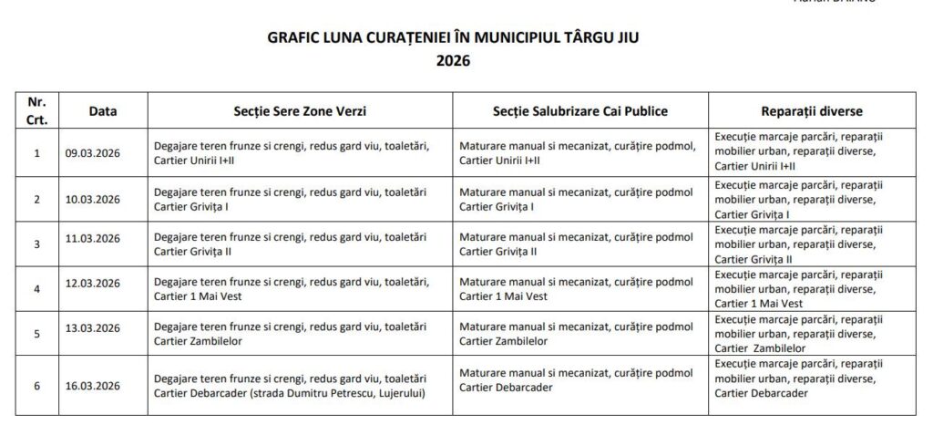 Reprezentanții Primăriei Târgu Jiu fac apel la cetățenii din zonele în care se intervine să sprijine desfășurarea lucrărilor.