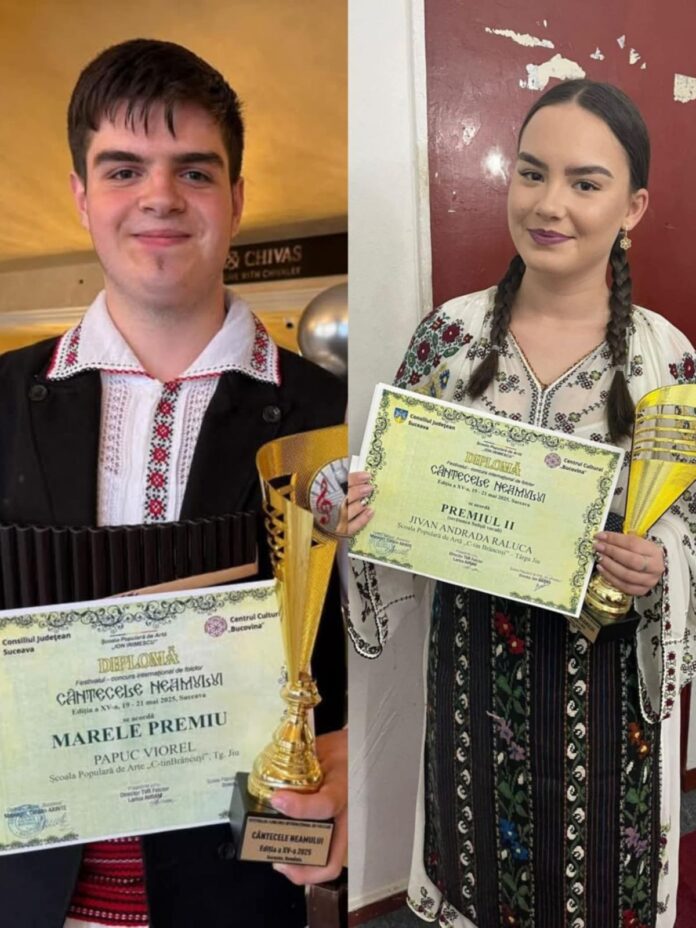 Cursanții Școlii Populare de Arte „Constantin Brâncuși” din Târgu Jiu continuă să se remarce pe scenele naționale și internaționale, obținând rezultate de excepție la două festivaluri-concurs dedicate muzicii populare.