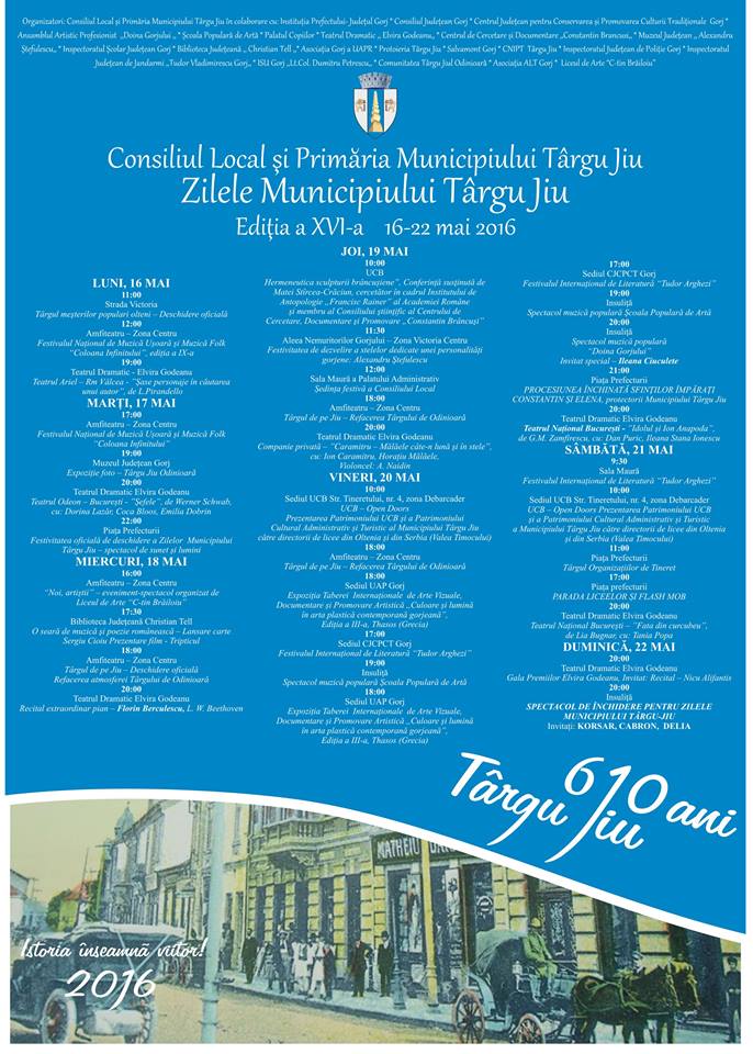 Click pe fotografie pentru a vedea programul complet al Zilelor Municipiului Târgu-Jiu!