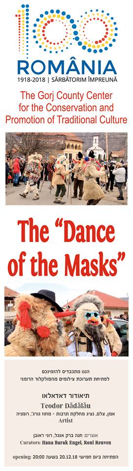 La finalul evenimentelor organizate pentru sărbătorirea Centenarului Marii Uniri, Centrul Județean pentru Conservarea și Promovarea Culturii Tradiționale (CJCPCT) Gorj organizează, în perioada 19-22 decembrie 2018, o expoziție de fotografie etnografică la Tel Aviv în Israel. Tot atunci va avea loc și lansarea albumului cu același nume, în ediție bilingvă. O serie de lucrări din colecția „Dansul Măștilor” vor fi expuse de către artistul fotograf Teodor Dădălău la Ambasada României din Tel Aviv și Galeria de artă Yavne din Israel. Detalii în ediţia de mâine a cotidianului Gorjeanul.
