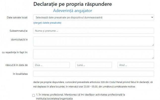 În contextul noilor restricţii şi măsuri de siguranţă sanitară impuse de autorităţi pentru limitarea efectelor negative înregistrate de pandemia de COVID-19, Serviciul de Telecomunicaţii Speciale (STS) a actualizat platforma electronică https://formular.sts.ro, unde cetăţenii pot completa online declaraţiile pe propria răspundere şi adeverinţele de la angajator care atestă motivele deplasării în afara locuinţei în intervalul orar 23.00 – 05.00. Platforma, operaţionalizată pe site-ul STS, permite completarea, de pe telefon sau calculator, a câmpurilor predefinite specifice declaraţiei pe propria răspundere, respectiv adeverinţei de la angajator. După completare, formularele pot fi stocate pe dispozitive electronice şi prezentate pentru control autorităţilor abilitate, cu condiţia ca pe acestea să existe semnătura olografă a persoanei care foloseşte declaraţia, respectiv a reprezentantului legal al angajatorului şi data la care a fost redactat documentul. Precizăm că datele personale completate de cetăţeni pe platforma electronică nu sunt prelucrate de către Serviciul de Telecomunicaţii Speciale, acestea fiind stocate numai pe dispozitivele electronice ale utilizatorilor.