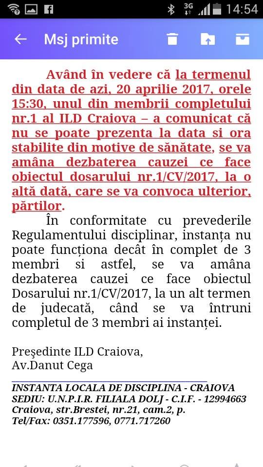 Emanuel Ciobanu, administrator judiciar al Pandurii Târgu-Jiu, rămâne în funcția de la clubul de fotbal, dar și de la UEF Motru, deși este acuzat de incompatibilitate, pe motiv că ar fi, în mod injust, lichidator atât la debitor, cât și la păgubitul, aparținând CE Oltenia. Totul pentru că plângerea din februarie, la adresa lui Ciobanu, făcută de Sindicatul Lignitul Oltenia și de Asociația Liga Suporterilor Durii, a fost amânată iar ieri la judecare, de către Uniunea Națională a Practicienilor în Insolvență din România(UNPIR) Filiala Dolj. Motivul, de data aceasta, a fost îmbolnăvirea subită a unuia dintre judecători.