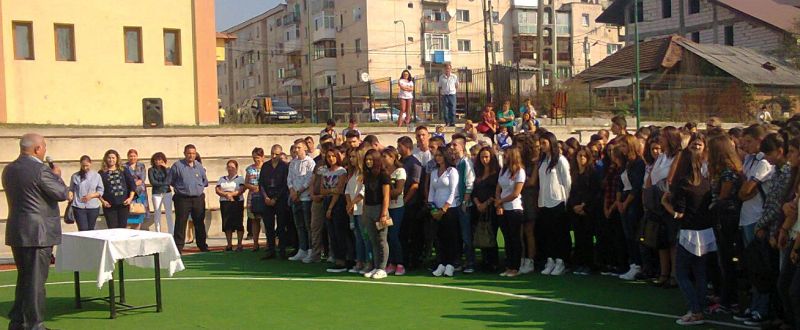 În cuvântul festiv și în mesajul său, adresat mai întâi elevilor, domnul prof. Mihai Istrate, directorul liceului care din vara acestui an a primit titlul de «școală europeană», a salutat «sunetul primului clopoțel», chemându-i pe elevi la seriozitate, la autodepășirea propriilor limite, spunându-le părinților Fotografie0810că e bine să treacă cel puțin o dată pe săptămână pe la școală, pentru a cunoaște situația copiilor, solicitându-le colegilor profesori ca deviza lor să fie performanța, la un liceu care beneficiază de cea mai bună dotare din județ. În final, elevii au mers la clase împreună cu diriginții lor și au fost sfătuiți să realizeze o bună percepție socială, pentru a fi împliniți, atât în școală, cât și în afara școlii.