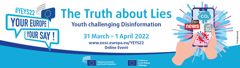 Comitetul Economic și Social European (CESE) va organiza, online, în perioada 31 martie – 1 aprilie 2022, cea de-a 13-a ediție a manifestării „Europa ta, părerea ta!” / Your Europe, Your Say! 2022. Evenimentul face parte din seria de acțiuni organizate pentru tineret în cadrul Conferinței privind viitorul Europei și are ca temă „Adevărul despre minciuni. Tinerii în fața provocărilor dezinformării”. 33 de școli (câte una din cele 27 de state membre ale UE și din cele cinci țări candidate, precum și una dintre școlile europene de la Bruxelles) vor fi invitate să participe la o serie de dezbateri, ateliere și activități interactive în limba engleză. Fiecare școală selectată va alege maximum trei elevi din penultimul an de studii, care se vor întâlni online cu elevi din alte țări pentru a face schimb de opinii și a elabora declarații privind tema propusă. Termenul de depunere a candidaturilor este 26 noiembrie 2021. „Dacă instituția dvs. este o unitate de învățământ secundar, de orice tip, din unul dintre cele 27 de state membre, din una dintre cele cinci țări candidate sau este una dintre școlile europene de la Bruxelles, vă invităm să trimiteți o cerere de participare la ediția din 2022 a manifestării YEYS. O școală din fiecare țară va fi aleasă prin tragere la sorți, iar câștigătorii vor participa la manifestarea online de două zile, care va fi transmisă și prin webstreaming, prin intermediul canalelor de comunicare socială ale CESE. În cazul în care școala dvs. este selectată, puteți alege maximum trei elevi din penultimul an de studii, supravegheați de unul sau mai mulți profesori. Ei se vor întâlni online cu elevi din alte țări, cu care vor putea să facă schimb de opinii și să elaboreze declarații pe temele propuse pentru manifestare. Va fi o ocazie unică pentru tineri de a înțelege mai bine modul în care funcționează Uniunea și de a participa la o dezbatere similară celor purtate în cadrul unei adunări, într-un mediu multicultural”, transmit organizatorii. Mai multe detalii, inclusiv formularul de înscriere, sunt disponibile la următoarea adresă: https://www.eesc.europa.eu/en/agenda/our-events/events/your-europe-your-say-2022/yeys-2022.