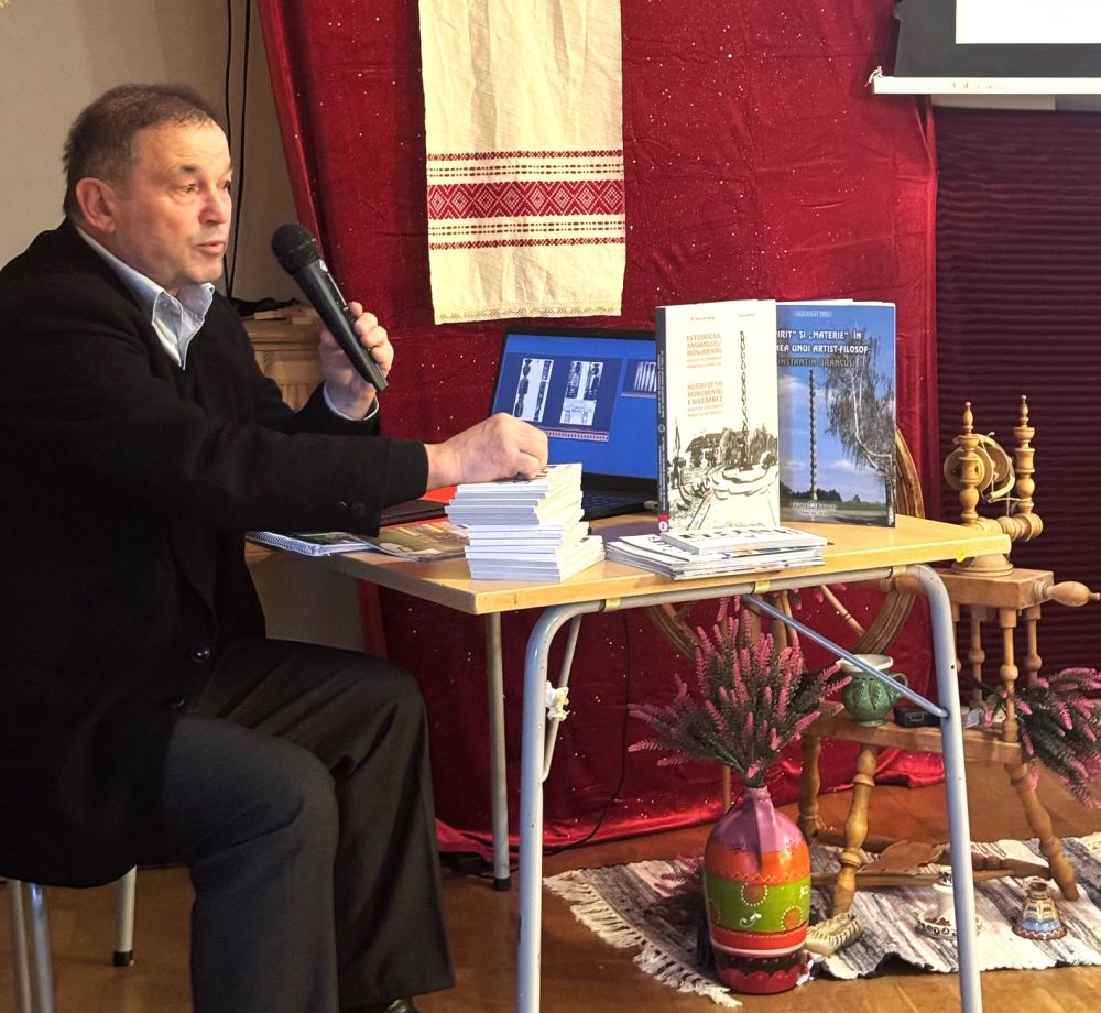 În continuare, cercetătorul a prezentat cartea „Istoricul ansamblului monumental realizat de Constantin Brâncuși la Târgu Jiu” (autori: Dr. Sorin Buliga, Adina Andrițoiu), expunând etapele de creație ale capodoperei brâncușiene, semnificația sa culturală și impactul asupra comunității locale și a patrimoniului artistic românesc și universal.