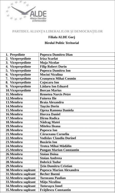 Cea mai mare parte a acestor persoane, potrivit discuțiilor cu respectivii, nu cunosc încă faptul că se află în noua structură de conducere a ALDE Gorj.