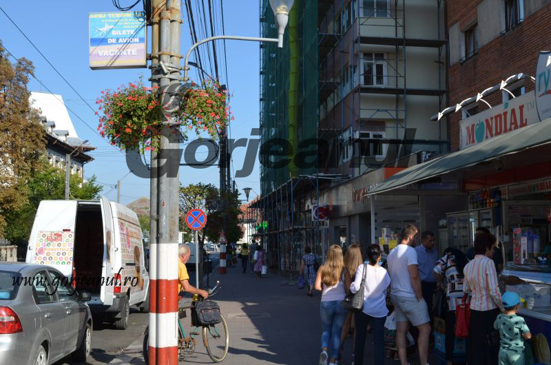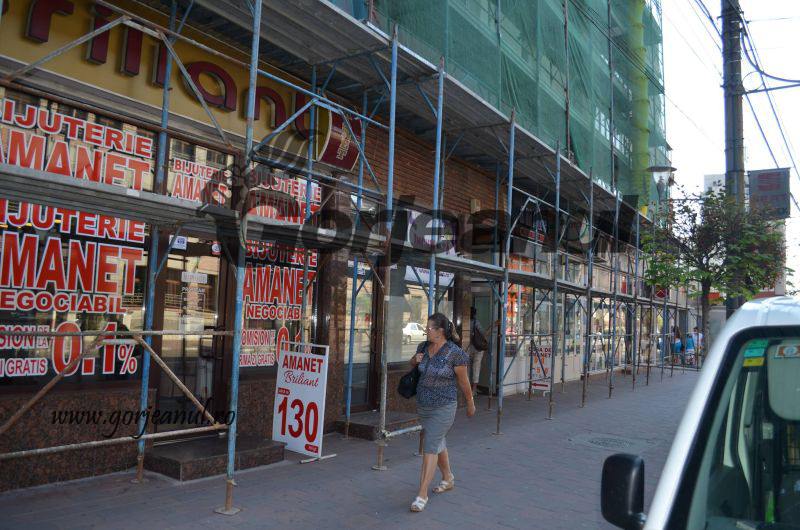 Blocul situat vizavi de Colegiul Național “Tudor Vladimirescu” are la parterul său o unitate a Loteriei Române, o bijuterie, vreo două case de amanet, un second-hand, dar și alte unități comerciale cunoscute în centrul orașului. Comercianții sunt însă revoltați de prezența schelelor deasupra intrării în unitățile lor comerciale și asta deoarece lucrarea s-a finalizat încă din decembrie anul trecut.
