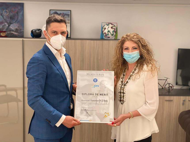 Ministrul Tineretului și Sportului, Eduard Novak, i-a oferit gorjencei Constantina Diță o diplomă de merit pentru întreaga carieră. ,,Marii campioni ai sportului românesc merită recunoaștere, apreciere și recunoștință. Doamna Constantina Diță este o mare valoare și un reper de performanță, iar eu am fost onorat să o felicit pentru tot ceea ce a realizat în sport și pentru sport”, a declarat ministrul. ,,Pentru mine, primirea diplomei de merit în urma activității sportive a fost neașteptată și foarte plăcută. Îi mulțumesc Domnului Ministru Eduard Carol Novak pentru acest premiu! Sunt onorată și motivată să sprijin atletismul românesc. Atletismul românesc are nevoie să redevină ambasador internațional. Am revenit în România să ofer, nu să iau. Intenționez să mă implic cu toate resursele mele: efort, experiență, contacte internaționale”, a replicat fosta campioană olimpică, care va candida pentru șefia Federației Române de Atletism. Constantina Diță-Tomescu s-a născut pe 23 ianuarie 1970, în localitatea Turburea, județul Gorj. A început atletismul la clubul Pandurii Târgu Jiu. În 2004, pe când avea 34 de ani, gorjeanca a cucerit prima ei medalie mondială: bronz la semimaraton, la competiția desfășurată la New Delhi. În 2005, Constantina a cucerit aurul la mondialele de semimaraton de la Edmonton și argintul la mondialul de maraton de la Helsinki. Tot în 2005, atleta a câștigat maratonul de la Chicago, fiind cronometrată cu 2h:21m:30s, cea mai bună performanță a carierei. În 2008, a înregistrat cel mai important rezultat: aur la Jocurile Olimpice de la Beijing. Performanța Constantinei Diță-Tomescu din 2008 a fost, din nefericire, ultima de acest gen a atletismului românesc. A intrat astfel într-o companie selectă alături de Doina Melinte, Paula Ivan, Gabriela Szabo, Iolanda Balaș, Viorica Viscopoleanu, Anișoara Cușmir-Stanciu, Lia Manoliu, Mihaela Peneș și Maricica. Constantina Diță a enumerat și obiectivele pe care le are dacă va câștiga șefia FRA. ,,Primul lucru ar fi baza ‘Iolanda Balaş Soter’ din capitală, pentru că nu aveam un stadion internațional omologat. Apoi, aş crea, pentru sportivi şi antrenori, loturi lărgite pentru cantonamente. Al treilea obiectiv este refacerea bazelor sportive din ţară. În ultimii ani, s-au făcut favoritisme în atletismul românesc. Cu o echipă bună, cu comunicare şi transparenţă în FRA, eu spun că se pot face lucruri foarte frumoase. Putem aduce performanţa înapoi”.