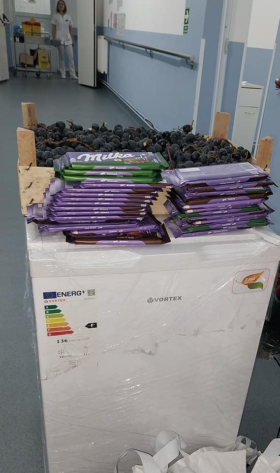 În pragul sărbătorilor de iarnă, bolnavii internați la Secția de Oncologie a Spitalului Județean au primit fructe și dulciuri din partea unei foste paciente. De asemenea, aceasta a achiziționat și un frigider, pe care l-a donat Secției Oncologie.