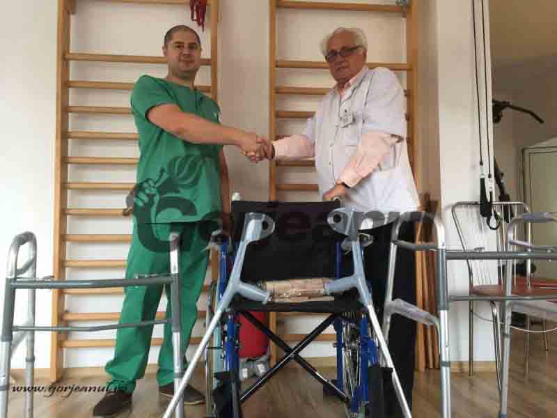 Noi dotări la Compartimentul RMFB din cadrul Spitalului Orășenesc Novaci. Asociația pentru Prevenirea și Tratarea Coloanei Vertebrale a dotat compartimentul cu un fotoliu rulant în valoare de 490 de lei, un cadru pliabil de 130 de lei, un cadru pliabil cu roți – 180 de lei, un set cârje cu susținere antebraț – 60 de lei și o orteză lombară. “Am reușit să prindem în bugetul pe anul acesta o donație către Spitalul Orășenesc Novaci, donație care sperăm să ușureze spitalizarea pacienților RMFB”, a confirmat Dan Bădulescu, președinte Asociația pentru Prevenirea și Tratarea Coloanei Vertebrale.