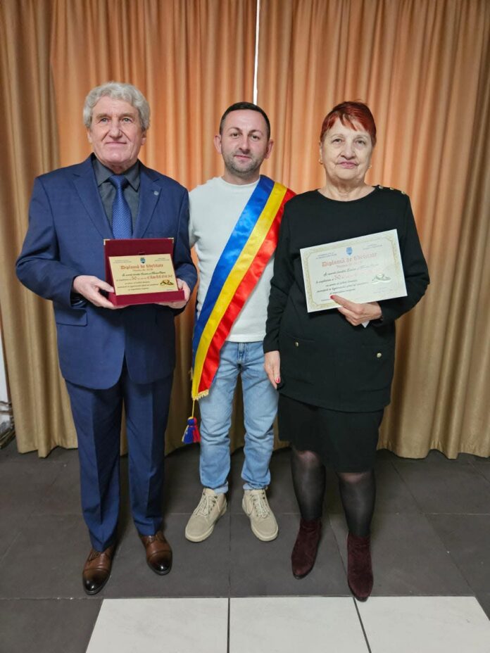 Familiile Pisc și Olaru au fost sărbătorite de autoritățile locale din orașul Rovinari, la aniversarea a 25, respectiv 50 de ani de căsnicie.