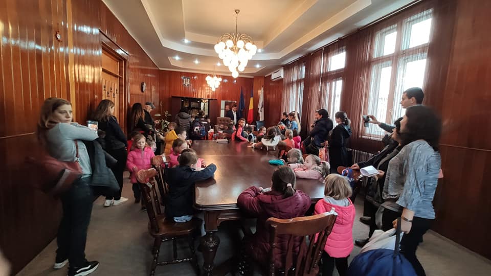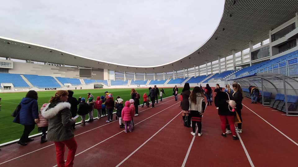 Copiii au fost încântați să discute cu primarul Marcel Romanescu, să viziteze Sala de Consiliu și biroul primarului, dar mai ales să se joace pe Stadionul Municipal unde au alergat pe gazon și pe pista de atletism.