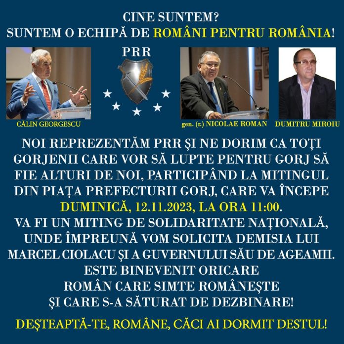 De asemenea, un protest este anunțat și de liderului filialei Gorj a PRR, Dumitru Miroiu, miting care va avea loc la ora 11.00, după cum a anunțat acesta.
