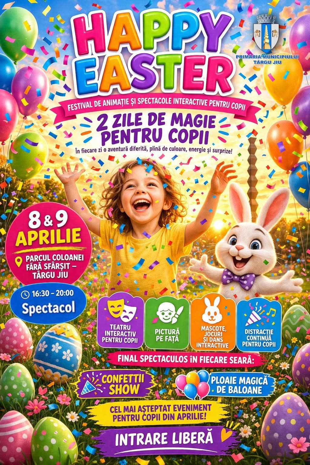 „În câteva zile, copiii vor avea un singur plan: să ajungă aici! Miercuri și joi, pe 8 și 9 aprilie, Parcul Coloanei Fără Sfârșit devine locul de unde nu vor mai vrea să plece acasă. Teatru interactiv, mascote și personaje îndrăgite, pictură pe față, jocuri și distracție fără oprire. Iar, la final… confetti, ploaie de baloane, explozie de bucurie. Intrarea este liberă”, a anunțat primarul Marcel Romanescu.