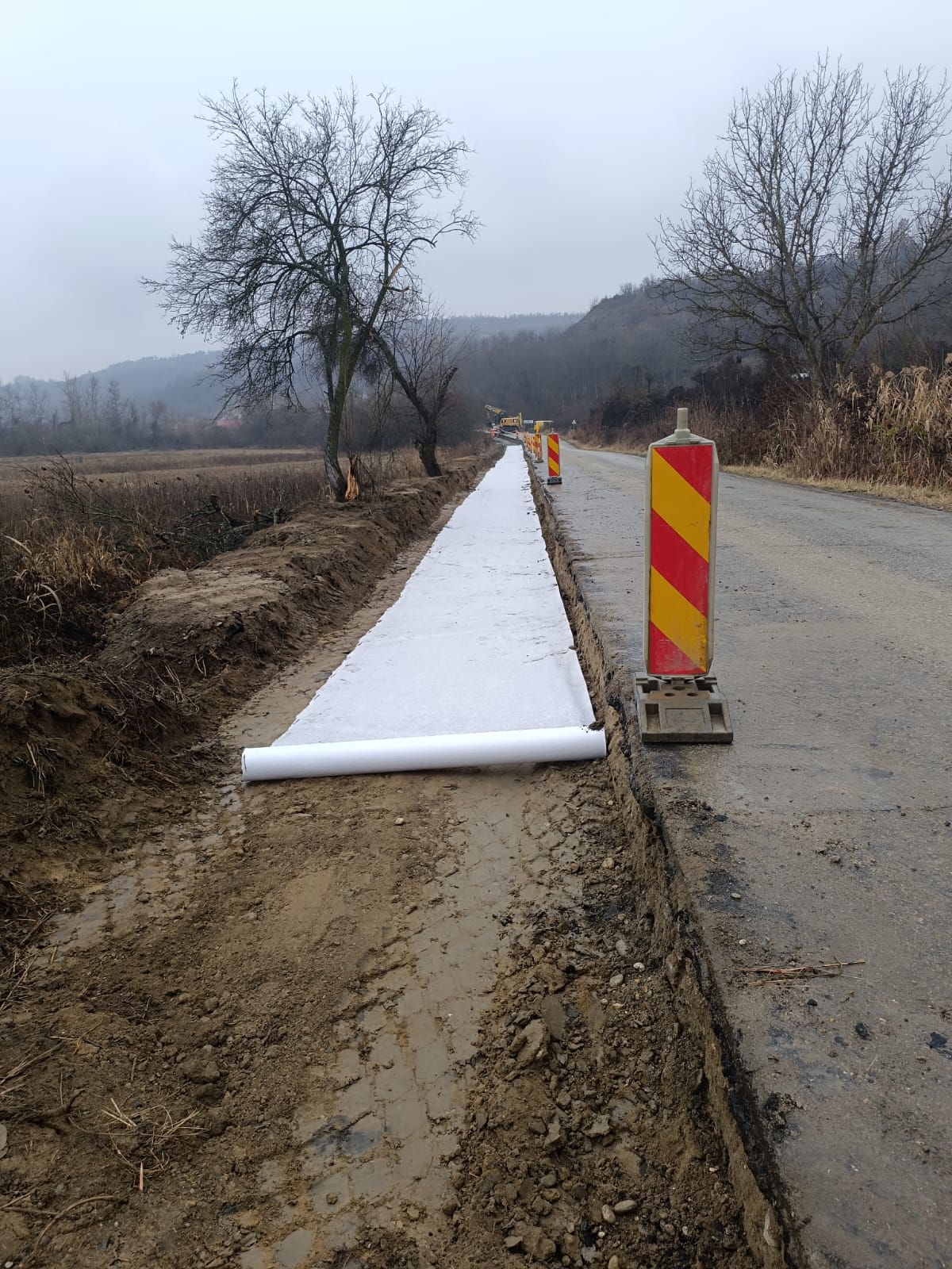 În această etapă, echipa de execuție a început lucrările la casetele de supralărgire a drumului, finalizând deja 400 de metri pe sectorul km 2+700 – 4+250. Urmează refacerea zonelor afectate și continuarea lucrărilor pe toată lungimea traseului.