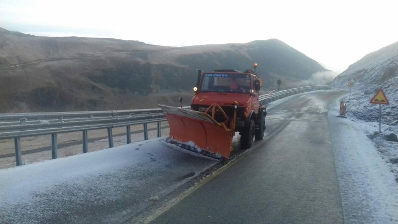 În zona montană, toamna s-a transformat în iarnă, începând din acest weekend. A fost treia noapte, consecutivă, de ninsoare pe Transalpina. S-a acționat și în cursul dimineții de luni, cu un utilaj multifuncțional cu lamă și răspânditor de material antiderapant, pentru asigurarea condițiilor de siguranță pentru participanții la trafic.