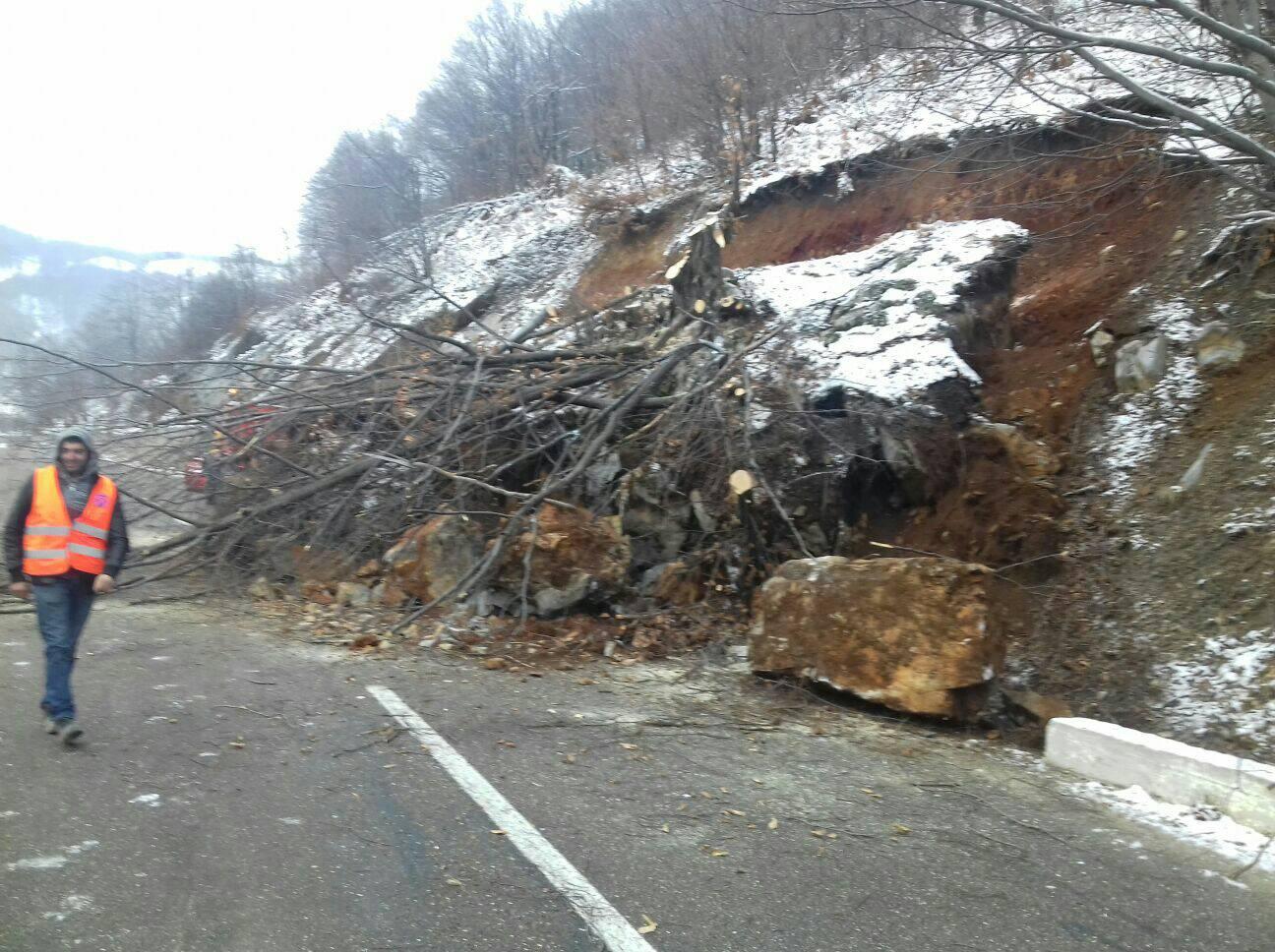 Pe DN 67D, în zona Godeanu, se circulă pe o singură bandă, după ce mai multe stânci s-au prăvălit de pe versanți și au ajuns pe carosabil.