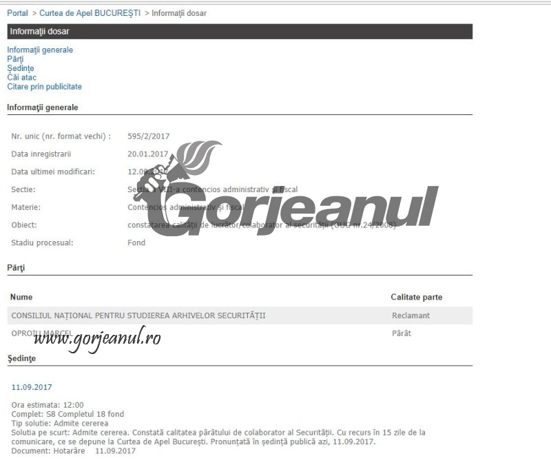 Marcel Oproiu, numit luna trecută viceprimar al comunei Drăguțești, cu sprijinul PSD-ALDE, are serioase probleme cu legea, nu doar cu ținerea de minte. O dovedește o sentință recentă a Curții de Apel București, care stabilește că Oproiu, care și-a schimbat numele de Pachiu, a fost colaborator al Securității, în ex-regimul comunist, lucru pe care acesta a declarat că îl uitase. Localnicii comunei Drăguțești nu uită însă că în 2013, Oproiu a mai avut o problemă cu legea, pentru care s-a ales cu o condamnare de 6 luni de închisoare cu suspendare, asta pentru că s-a răsturnat cu mașina într-un șanț al localității, iar băut fiind a părăsit locul accidentului.