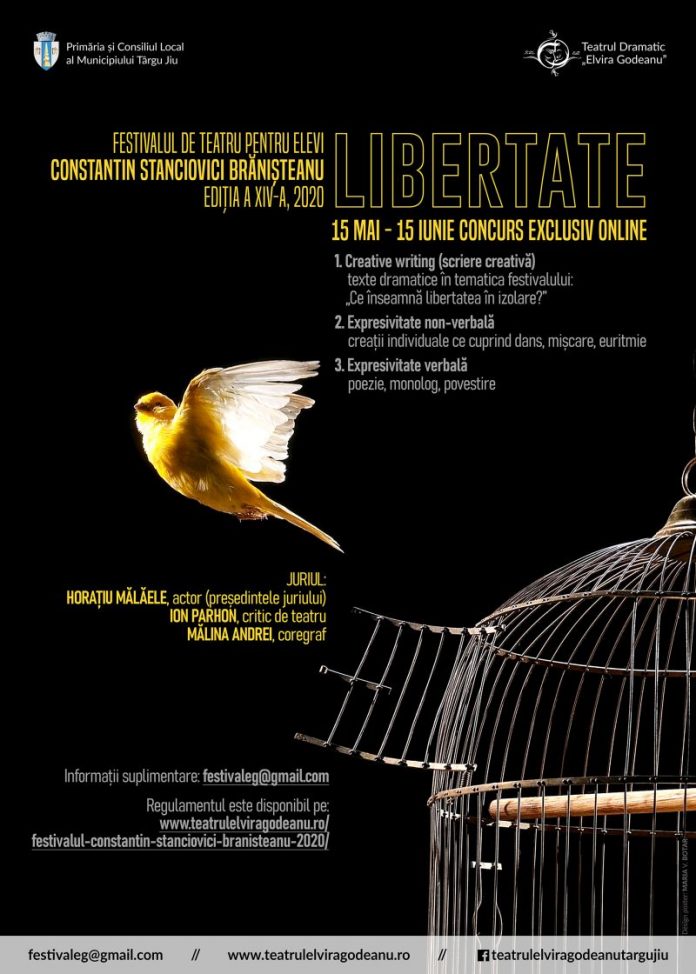 Teatrul Dramatic ,,Elvira Godeanu” din Târgu-Jiu organizează cea de-a XIV-a ediție a Festivalului de teatru pentru elevi ,,Constantin Stanciovici Brănișteanu”, eveniment ce va avea loc în perioada 15 mai-15 iunie 2020. Festivalul se adresează elevilor din ciclul şcolar liceal, din clasele IX-XII, din instituții școlare din municipiul Târgu-Jiu județul Gorj (cu excepția elevilor Liceului de Arte „Constantin Brăiloiu” Târgu-Jiu). Ediția din acest an a festivalului se desfășoară exclusiv online.