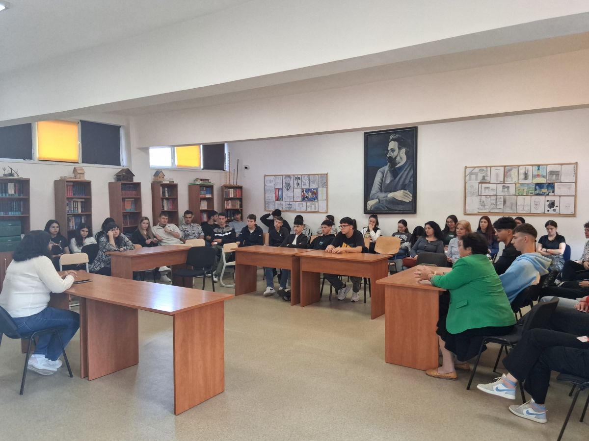 După prezentarea făcută de domnul director Alin DOBROMIRESCU, medicul specialist CORNOIU Cristina a prezentat elevilor, în două serii, prima de la gimnaziu și a doua de la liceu, informații despre „Educația nutrițională – alcătuirea unui regim alimentar pentru un om sănătos și pentru un om bolnav” și „Armonia și expresia corporală – Tulburări de statică ale coloanei vertebrale”, într-un mod interactiv, răspunzând apoi la întrebările elevilor.