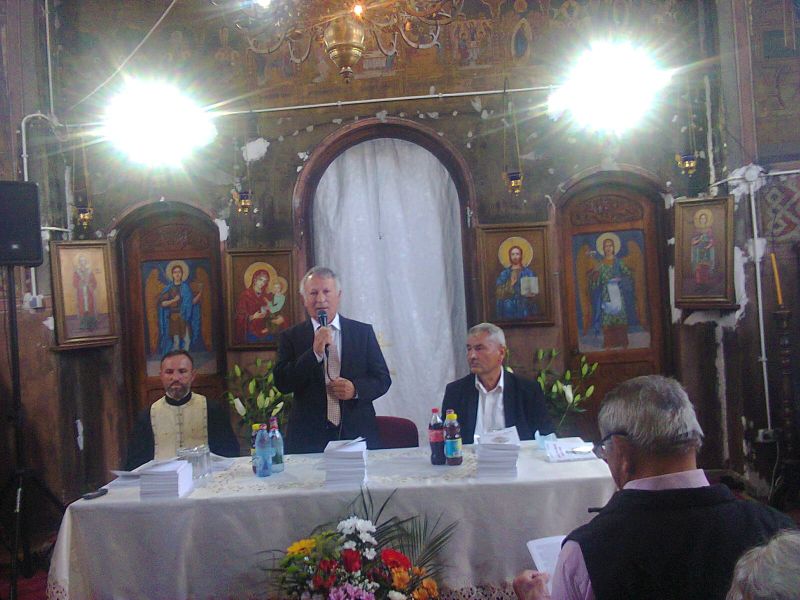 Referitor la cartea lansată astăzi, am abordat istoria localităţii şi a bisericii noastre cu multă atenţie, pentru că fiecare afirmaţie, fiecare propoziţie şi fiecare frază au o justificare, iar, vorbind despre biserică, am avut în vedere toate elementele adiacente ale acestui sfânt lăcaş, inclusiv cele care sunt legate de cimitir, de clopotniţă sau de prăznicar! Apreciez această prezenţă a dumneavoastră în număr atât de mare, de asemenea, apreciez aportul tânărului preot Ilie Amzucu, pentru care am toată consideraţia faţă de munca sa, iar în viitor am în vedere de a-l sprijini în continuare, pentru că am în sufletul meu credinţa strămoşilor şi o păstrez ca să o am pentru totdeauna! Un dicton biblic spune că: «Trecători suntem pe pământ şi oaspeţi Domnului în fiecare clipă!». Deci, să cinstim aşa cum se cuvine existenţa noastră, cât nu este prea târziu! Să fim ca nişte fraţi, cinstiţi şi uniţi în credinţa strămoşilor noştri, să avem în suflet dragostea faţă de Dumnezeu, faţă de Mântuitorul Iisus Hristos”!