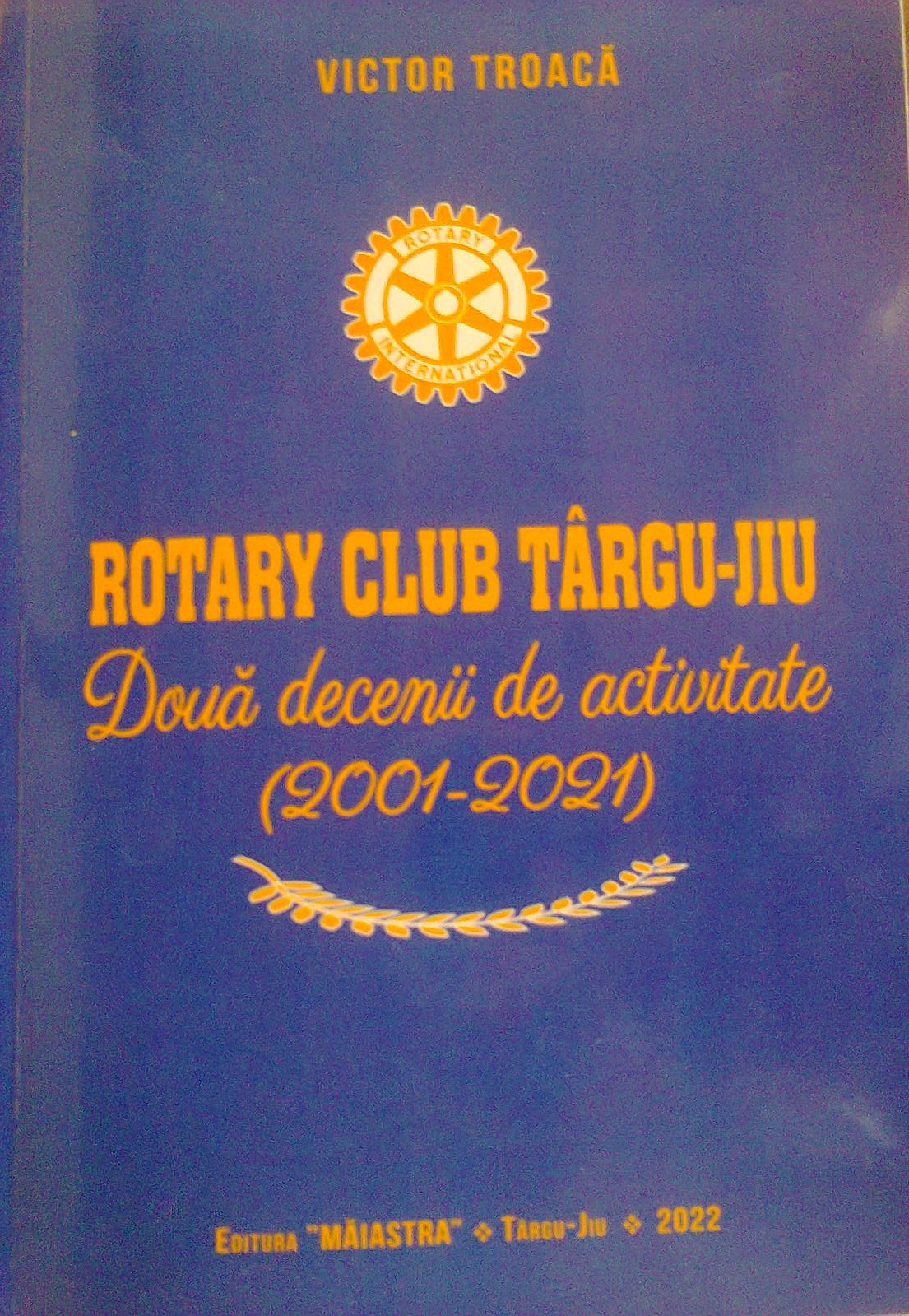 Aşa cum a subliniat însuşi Domnul dr. Victor Troacă, Președinte al Asociației Cercetătorilor și Autorilor de Carte Gorjeni «Al. D. Șerban» Târgu-Jiu, o întâmplare fericită a făcut ca să vin la o vreme potrivită, pe sub mângâierea unor stropi de ploaie, împreună cu domnul jurist Ion M. Ungureanu la un eveniment cultural deosebit care s-a desfăşurat recent în sala de festivităţi a Teatrului Municipal «Elvira Godeanu», la sfârşitul evenimentului oferindu-i cu mare plăcere distinsului lucrător în domeniul bancar un exemplar al modestei mele lucrări şi teză de doctorat despre «Depopularea mediului rural din România. Studii de caz în comune gorjene», după ce primisem la rândul meu, la intrarea în sală, remarcabila sa lucrare: «ROTARY CLUB TÂRGU-JIU». Două decenii de activitate (2001-2021)», care este o carte voluminoasă şi cu o ţinută grafică impresionantă şi impecabilă, apărută la Editura «MĂIASTRA» Târgi-Jiu, 2022. Trebuie să recunosc faptul că încă din acea seară, curiozitatea livrescă m-a făcut să o deschid şi să o răsfoiesc mai întâi, pentru ca ulterior să încep să-mi întocmesc anumite note de cititor aasupra unei cărţi care pentru mine este una de o factură diferită şi inedită, dar, mai ales discretă, aşa cum nu mai citisem de multă vreme, dar, de când mă apropiasem spiritual de astfel de activităţi cu ani buni în urmă! Deşi am fost entuziasmat şi plin de avânt în dorinţa mea de a realiza prezentarea acestei cărţi, abia parcurgând-o şi pătrunzând mai adânc în semantica ei tulburătoare, «mijea» în sinea mea un fel de mefienţă în propria-mi capacitate de asimilare a unor valori legate de anumite taine de nepătruns, dar, cum Taina tainelor este Însuşi Dumnezeu, am considerat că trebuie să-mi pun mintea la lucru şi dintr-o perspectivă filosofico-iluministă să mă iniţiez în taina iluminării spirituale! Atunci şi numai atunci când trebuie să prezint o carte de mare valoare, cred că sunt într-o dilemă de ancorare ocazională integrativă, pentru că nu ştiu ce trebuie să evoc mai întâi, cartea la modul general sau filele unei cărţi care ilustrează osteneala a două decenii de muncă şi de viaţă ce a iluminat din adâncuri sufletului unui anumit om care a trudit zile şi nopţi ca să scoată la iveală acceptarea pragmatică a rolului pe care poate să-l joace complicitatea cu absolutul!