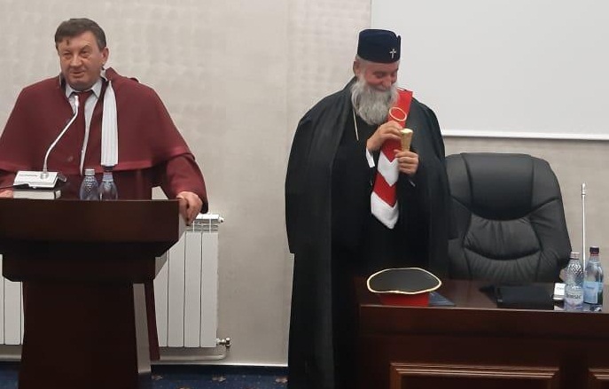 Aşa cum am precizat, în după-amiaza şi spre seara zilei de 21 noiembrie 2019, în amurgul Sărbătorii «Intrarea în Biserică a Maicii Domnului», la sediul Universităţii «CONSTANTIN BRÂNCUŞI» din Târgu-Jiu, Complexul Studențesc «Debarcader», str. Tineretului nr. 4, în Amfiteatrul «Auditorium Maximum», în prezenţa membrilor Senatului, a unui număr însemnat de preoţi şi oameni de cultură, de elevi, studenţi, profesori din învăţământul preuniversitar şi cadre didactice universitare, a reprezentanţilor administraţiei publice locale şi judeţene, s-a desfăşurat festivitatea acordării Înaltului Titlu de «DOCTOR HONORIS CAUSA – MAGNA CUM LAUDE», Înaltpreasfinţitului Părinte, acad. dr. Irineu, Arhiepiscopul Craiovei şi Mitropolitul Olteniei. Iar, ca un răspuns la rostirea unui excepţional «LAUDATIO», prezentat de către domnul prof. univ. dr. Adrian Gorun, Preşedintele Senatului Universităţii «Constantin Brâncuşi», din Târgu-Jiu, Înaltpreasfinţitul Părinte, acad. dr. Irineu, Arhiepiscopul Craiovei şi Mitropolitul Olteniei a răspuns printr-o expunere «MAGNA CUM LAUDE» privitoare la moralitatea condiţiei omului în lumea dintotdeauna, dar, mai ales din lumea de astăzi, dezvoltând în chip magistral relaţia cosubstanţială dintre ştiinţă şi religie, dintre ştiinţă şi credinţă! În acest sens, Mitropolitul Olteniei a început prin a spune următoarele: ,,Se ştie că încă din antichitate se spunea ca să te cunoşti pe tine însuţi, de aceea, cred că mi-ar trebui şi mie o «injecţie» ca să mă cunosc pe mine însumi! Nu neapărat, că trebuie să fac din aceasta un discurs al modestiei, dar, trebuie să avem o măsură a noastră asupra tuturor lucrurilor!”