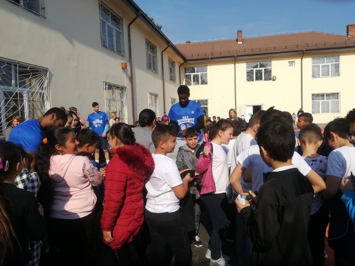 După spectacolul de baschet oferit de sportivi, elevii au răsplătit invitaţii cu ropote de aplauze, s-au înghesuit să-şi facă „selfie” cu aceştia, au cerut autograf după autograf şi s-au simţit minunat.