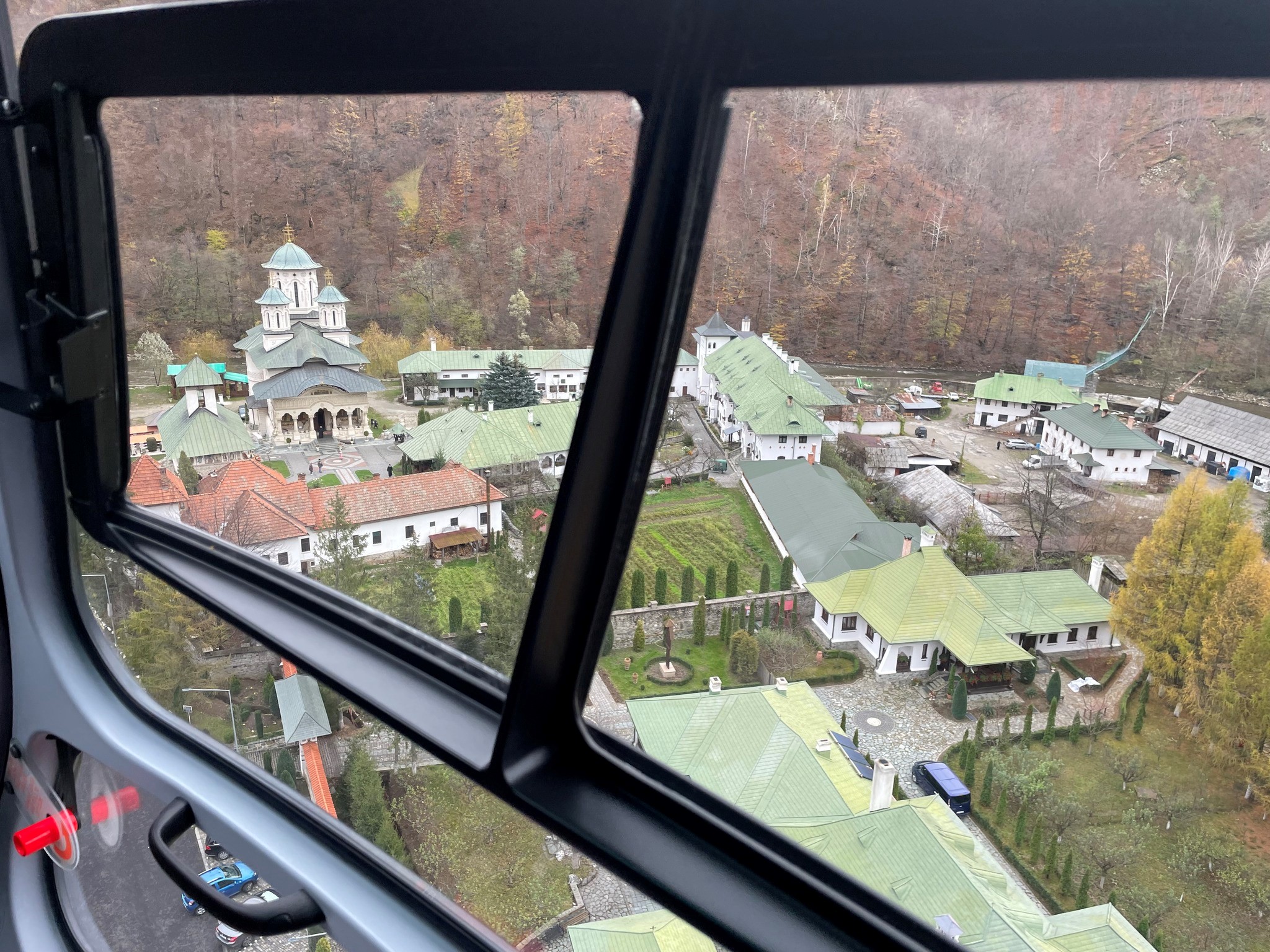 Newsflash.ro: Aparatul de zbor l-a adus la mănăstirea Lainici pe Răzvan Bucuroiu, director editorial la „Lumea Credinței”.