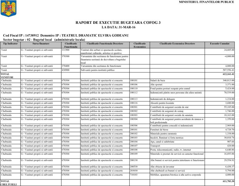 În februarie 2016, Negrescu s-a forțat un pic și a crescut încasările la “incredibila” sumă de 1.185 de lei, asta deși subvenția autorităților a crescut și ea la 363.885 de lei, cheltuielile teatrului fiind, în a doua lună a anului trecut, de 365.070 de lei. În luna martie, managerul de nota aproape 10 fără cinci sutimi, reușește să obțină venituri de aproape 20.000 de lei la teatru, dar, un mare dar, crește cheltuielile la 611.783 de lei, din care peste 587.000 de lei vin tot de la darnica municipalitate.