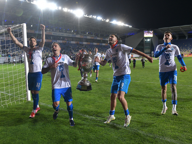 Sărbătoare la Craiova după ce a opta Cupă a României a ajuns în oraş. CS Universitatea Craiova a câştigat o finală dramatică împotriva Astrei Giurgiu, 3-2, bifând al doilea trofeu de la redeschiderea secţiei de fotbal. Dacă în 2018, Craiova se impunea destul de uşor în finala cu FC Hermannstadt (2-0) de pe Arena Naţională, elevii lui Marinos Ouzounidis s-au chinuit acum teribil cu o echipă deja retrogradată. Andrei Ivan a deschis scorul după o pasă foarte bună a lui Dan Nistor (14), dar olteanul Valerică Găman a egalat dintr-un penalty scos de Stahl (17). Craiova a jucat cu nerv, a presat, dar s-a lovit de paradele lui Mihai Popa, care a fost de netrecut până la finalul primului act. Universitatea a fost echipa mai insistentă şi în partea a doua a meciului, dar, odată cu trecerea timpului, juveţii au devenit tot mai neinspirați în atac. Mai mult, Canadija putea trimite cupa la Giurgiu, în minutul 88, dar Pigliacelli a avut o intervenţie bună la şutul deviat al croatului. Totuşi, astralii au punctat în debutul prelungirilor prin Kane, primul la minge după o acţiune foarte bună a lui Valentin Gheorghe (93). Nistor i-a readus în joc pe olteni peste numai 7 minute, cu un şut senzaţional din afara careului. Când toată lumea se pregătea de penaltiuri, Screciu a punctat după o fază fixă, profitând şi de o ieşire total neinspirată a lui Popa (113). Ultima ocazie i-a aparţinut lui Balaure, dar portarul italian al Ştiinţei a respins în faţă. La câteva momente, s-a auzit fluierul ,,izbăvitor” al lui Horaţiu Feşnic. Trofeul i-a fost dedicat celui mai bun ,,optar” din istoria Universităţii, Ilie Balaci.
