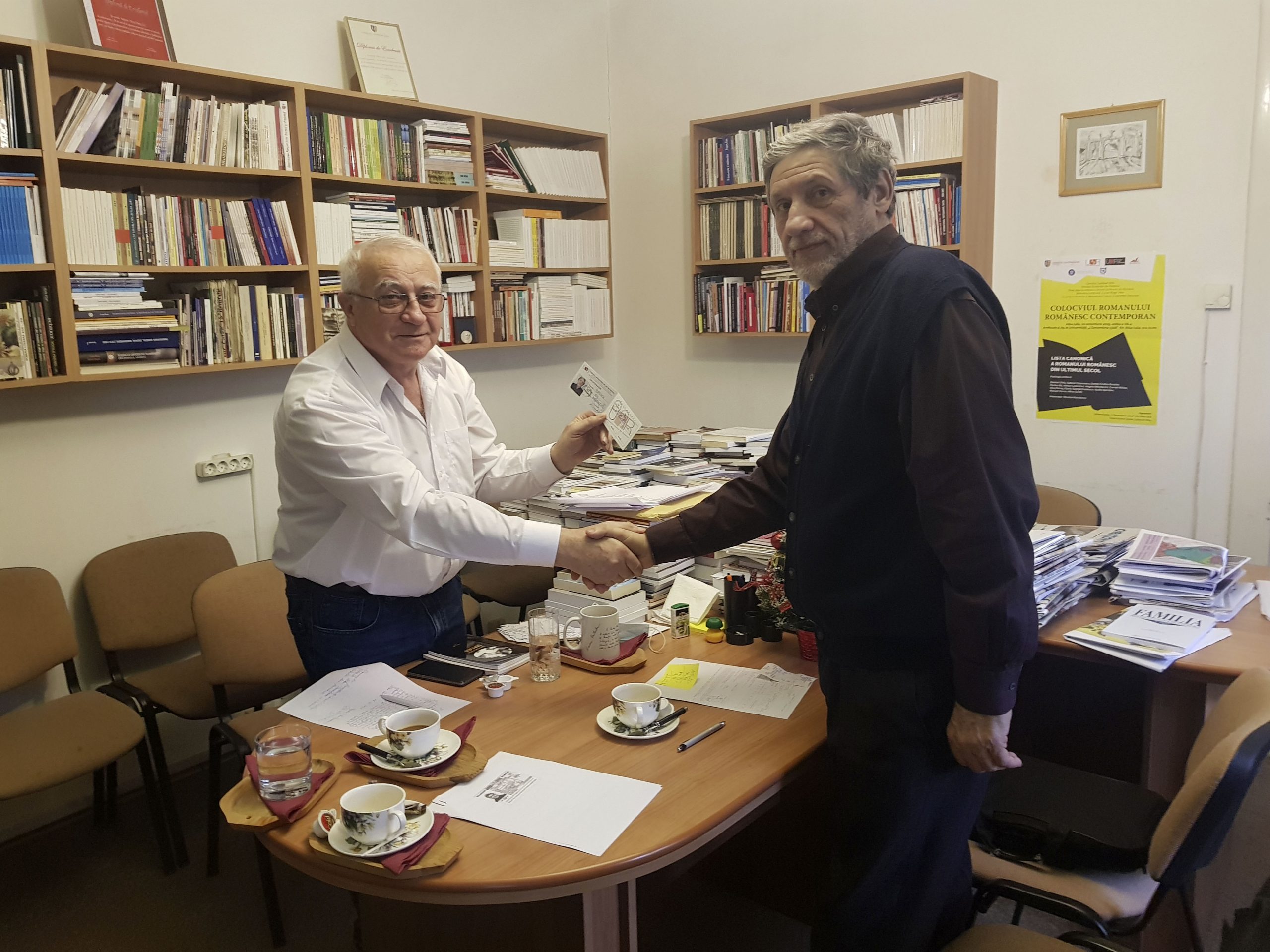 Dar, cum v-aţi dumirit, deja, n-am arătat încă scopul deplasării spre Alba-Iulia. Purces-am într-acolo ca să-mi se înmâneze oficial legitimaţia de proaspăt membru al Uniunii Scriitorilor din România, de către preşedintele acesteia, prozatorul de sărbătoare a scrisului – de anvergură europeană – Cornel Nistea. Cu un an în urmă îi citisem o carte şi un „Jurnal 1977-1984”, acestea relevându-mi un autor prodigios, stilist şi… transflavbertian; cu un constant entuziasm pentru detaliul transsemnificativ (vezi şi „Iar nimic în cutia poştală” din 2019 – n.m.).