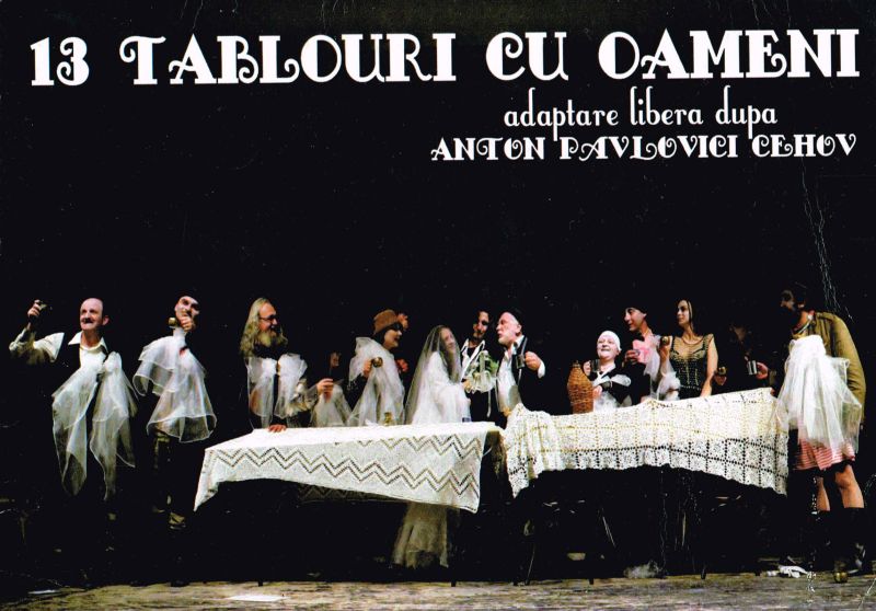 Reamintim cititorilor ziarului că în „13 tablouri cu oameni” au jucat la cea mai înaltă tensiune Ion Alexandrescu, Dan Calotă, Cosmin Brehuţă, Cristi Naum, Valeriu Bâzu, Pompiliu Ciochia, Sorin Giurca, Adriana Rodica Negrescu, Monica Adelina Sfetcu, Simona Urs, Ana Nicolae, Cornelia Diaconu, Marian Negrescu, acesta din urmă într-o triplă ipostază: Domnul cu mama oarbă, Prokofi Osâpici, Tăticul.