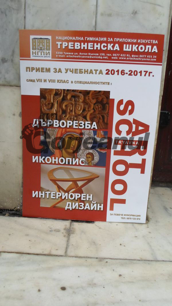 Pe simezele Sălii expoziţionale „Florin Isuf” sunt prezentate doar câteva sculpturi în lemn de mici dimensiuni şi mai multe reproduceri policrome de mari dimensiuni ale lucrărilor elevilor Liceului Naţional de Arta Lemnului, Icoane şi Design („modelaj”, în traducerea artistului plastic total care este Ivan Kancev, absolvent al Academiei Naţionale de Arte Frumoase „Nicolae Grigorescu”, din Bucureşti). Directorul acestui liceu unicat şi în Bulgaria, prof. Orfei Mindov susţine că „Trevnenska Şcola”, după cum scrie pe numeroasele afişe ori fluturaşi cu care s-au prezentat oaspeţii din Bulgaria. „Este foarte