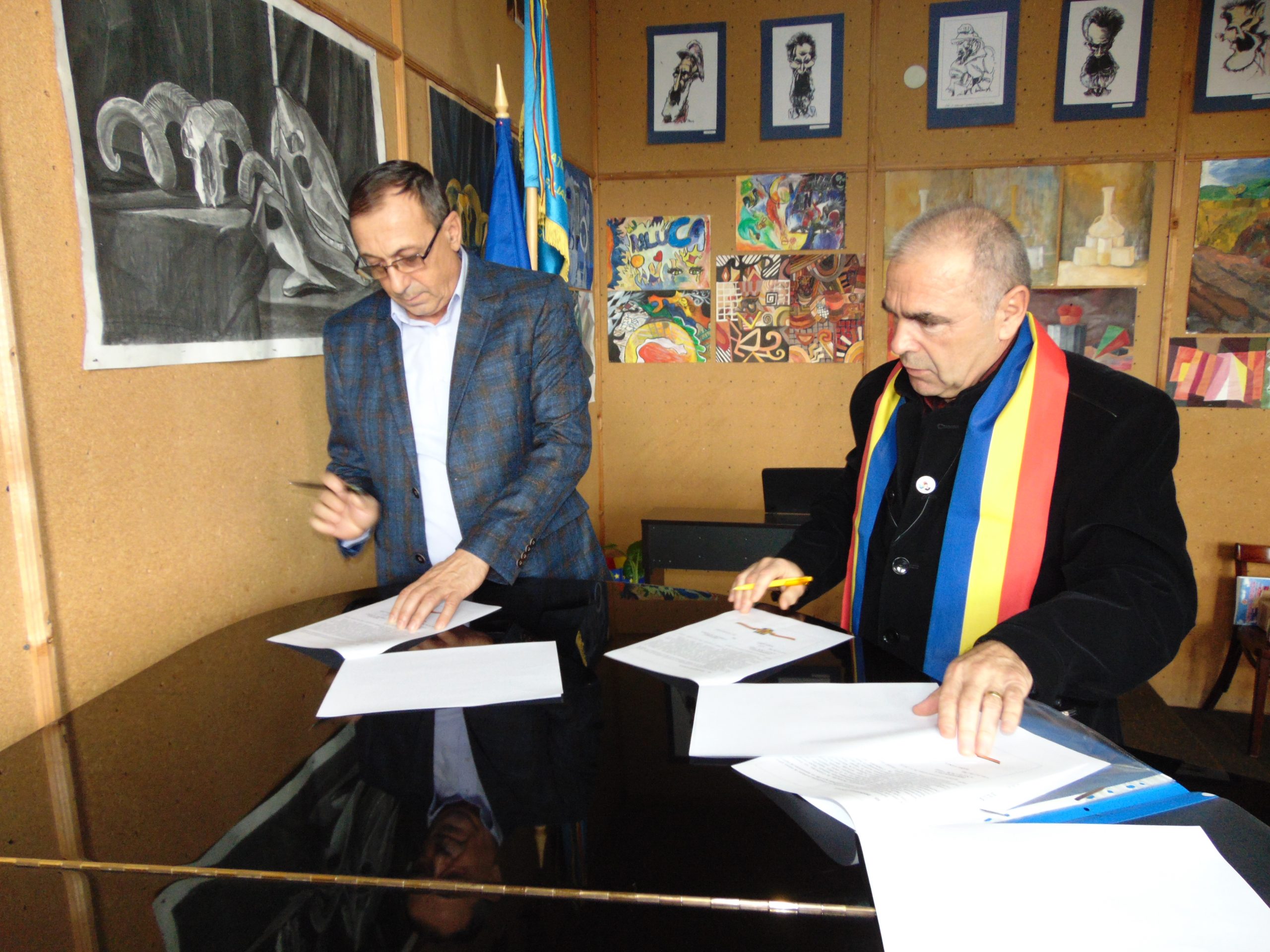 Ne-am deplasat cu toții în sala de festivități a liceului unde s-au semnat Parteneriate de colaborare între Filiala Județeană Gorj, reprezentată de col. (r.) dr. ing. Walter LOGA – președintele acesteia, și Primăria Scoarța, reprezentată de domnul primar Ion STAMATOIU, și Filiala Județeană Dolj, reprezentată de col. (r.) Marinel FLORESCU – președintele filialei.