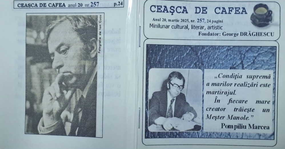 Poetul și actorul George Drăghescu, fondatorul și editorul minirevistei ”Ceașca de cafea”, ajunsă la Anul 20, martie 2025, nr. 257, a tipărit un număr special al minilunarului cultural, literar, artistic, dedicat în întregime celui care a fost prof. univ. dr. Pompiliu Marcea, reputat critic și istoric literar, dramaturg, scriitor și publicist, gorjean de origine, personalitate marcantă a literelor românești din a doua jumătate a secolului trecut, cu prilejul comemorării a 40 de ani de la asasinarea acestuia la 27 martie 1985. Secretar de redacție al minirevistei este domnul Grig M. Dobreanu, iar redactori asociați domnul Silviu D. Popescu și doamna Dorina Cioplea și redactor special domnul Mihai Pânzaru PIM. Minirevista are 24 pagini. Redacția: Teatrul Dramatic „ELVIRA GODEANU” din TÂRGU-JIU – ISSN 1223-9976.