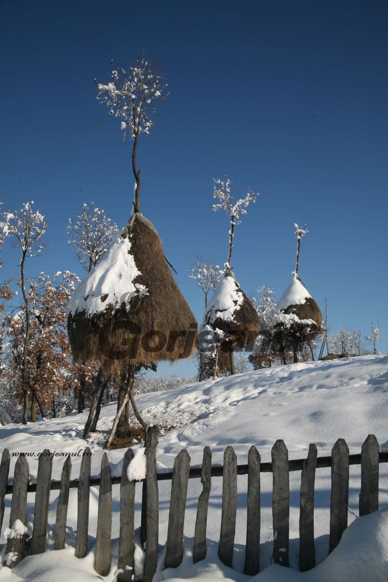 copac cu vârful înzăpezit, ca şi o parte din cea mai rămas din claia căreia i s-a luat fânul de la bază. Dar care claie n-a dispărut pentru că fânul încă nedat la animale se sprijină pe unele ramuri ale copacului. Claia nefiind ridicată pe un par, ci pe un copac vorbeşte de la sine despre civilizaţia sătească arhaică din Sohodol.