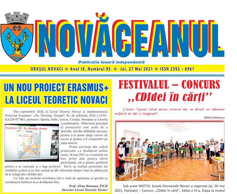 Are în cuprinsul recentului număr 95, Anul IX, și subiecte de actualitate precum: Un nou proiect Erasmus+ la Liceul teoretic Novaci, semnat de Prof. Alina Ramona Țicu, Director al liceului, Festivalul – concurs „CDIdei în cărți”, autoare Prof. înv. primar Tatiana Dârvăreanu și, chiar dacă vi se pare curios la sfârșit de lună mai și început de iunie, consemnarea ilustrată „A început deszăpezirea Transalpinei”, semnat de D. Constantin. Da vremea și vremurile s-au schimbat, nu totdeauna în bine, stațiunea Rânca putând fi pusă în valoare numai prin funcționalitatea Transalpinei.