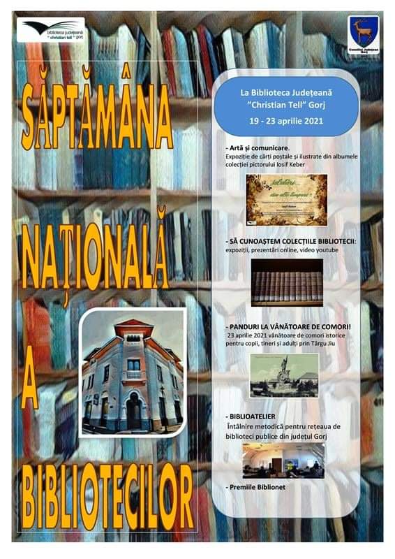 În perioada 19 – 23 aprilie 2021, Biblioteca Județeană ”Christian Tell” Gorj organizează o serie de evenimente dedicate Săptămânii Naționale a Bibliotecilor: