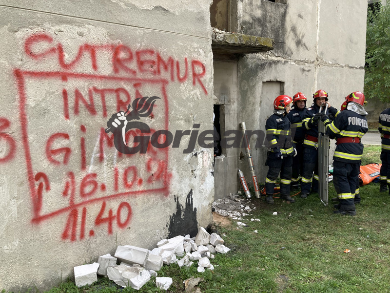 Un amplu exercițiu pentru salvarea victimelor unui cutremur a fost organizat la Mătăsari, chiar în blocurile ajunse în paragină după ce, cu decenii în urmă, au fost locuite de foști mineri din zonă.