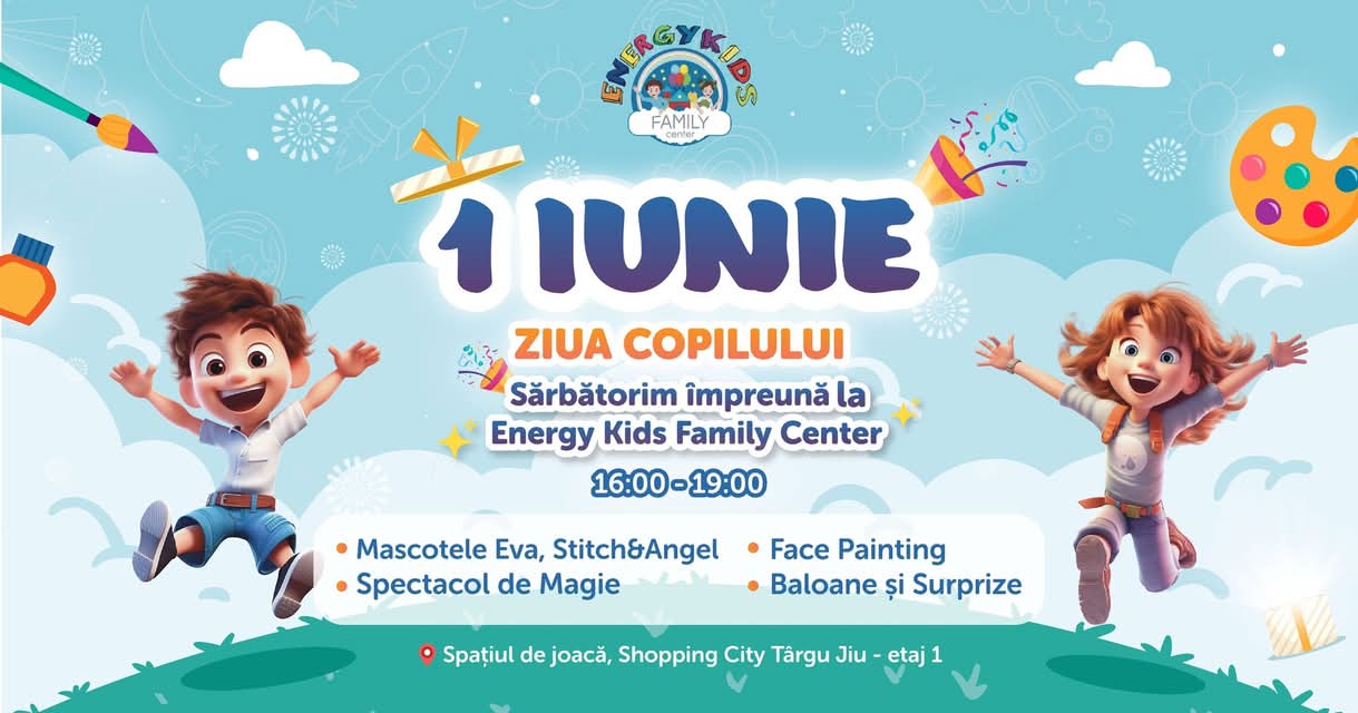 Pe 1 iunie, între orele 16:00 și 19:00, spațiul de joacă dedicat micuților situat la etajul 1 al Shopping City Târgu Jiu, devine locul în care juniorii se vor bucura de o petrecere de neuitat, plină de surprize, culoare și voie bună.