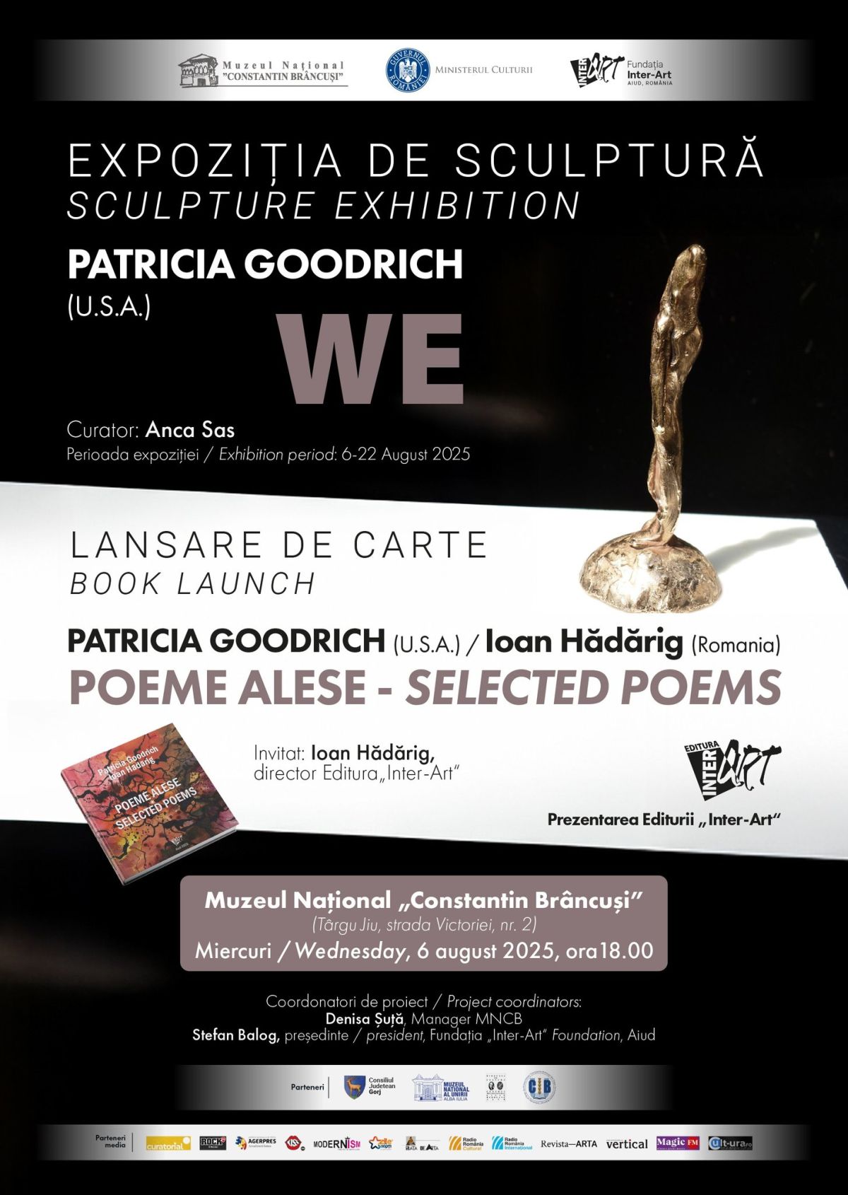 Expoziția este organizată de Muzeul Național „Constantin Brâncuși” în parteneriat cu Fundația Inter-Art Aiud. Vernisajul va fi urmat de lansarea volumului de poezie „Poeme alese”, semnat în colaborare de Patricia Goodrich și Ioan Hădărig – un demers artistic complementar, ce completează mesajul sculpturilor prin expresie lirică.