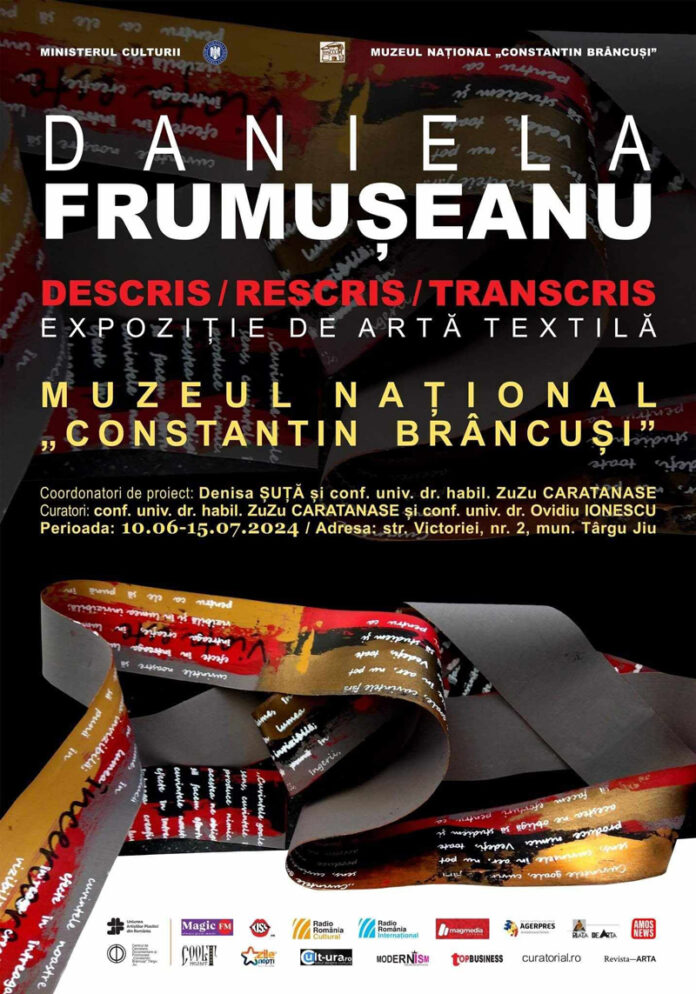 În această după-amiază, de la ora 18:00, Muzeul Național „Constantin Brâncuși” din Târgu Jiu organizează vernisajul expoziției de artă textilă intitulată „Descris. Rescris. Transcris”. Lucrările sunt semnate de către cunoscuta artistă Daniela Frumușeanu, care expune pentru prima dată la Târgu Jiu.