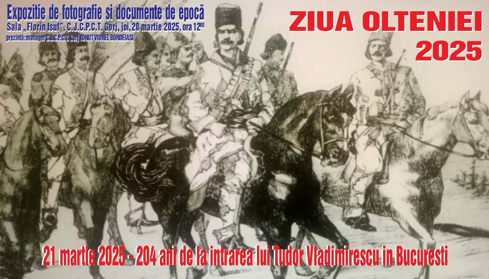 Evenimentul este dedicat Zilei Olteniei, sărbătorită pe 21 martie, și va celebra 204 ani de la intrarea lui Tudor Vladimirescu în București, un moment semnificativ.