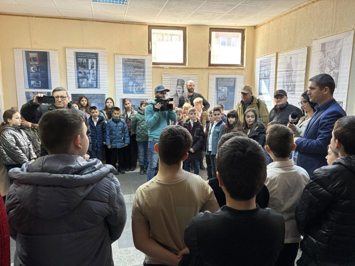 În timp ce elevii vizitau expoziția sub îndrumarea instructorilor culturali prezenți, Daniela-Petruța Gapșea, Dan Popescu, Raluca Miron, Luminița Tudorescu, Emilia Drăgotoiu-Nanu și Pompiliu Ciolacu, dar și a doamnelor învățătoare, domnul manager al acestei instituții, doctor Viorel-Ionuț Bordeiaș, ne-a dat următorul comunicat de presă: „Expoziția de astăzi este o expoziție omagială fiind dedicată Zilei Olteniei. În fiecare an, la 21 martie, începând cu anul 2018, cinstim Ziua Olteniei. Această zi a fost declarată prin Legea 65 din 22 aprilie 2017 ca zi națională. Ea marchează din punct de vedere istoric, momentul intrării lui Tudor Vladimirescu cu armata de Panduri în București, la 21 martie 1821. Expoziția cuprinde o serie de imagini document și, totodată, materiale documentare care ne aduc în prim-plan momente din viața lui Tudor Vladimirescu. Imagini cu el, anumite documente care evocă personalitatea lui, locuri prin care acesta a trecut în drumul său spre București. Astăzi ne bucurăm și de prezența câtorva clase de elevi de la școli din Târgu Jiu, care participă la vernisajul acestei expoziții și le mulțumim pentru participare. Încercăm să le explicăm cam ce se regăsesc în aceste fotografii, să înțeleagă momentul istoric pe care-l marcăm la 21 martie de ziua Olteniei. Țin să menționez faptul că selecția fotografilor a fost făcută de artistul fotograf Teodor Dădălău”.
