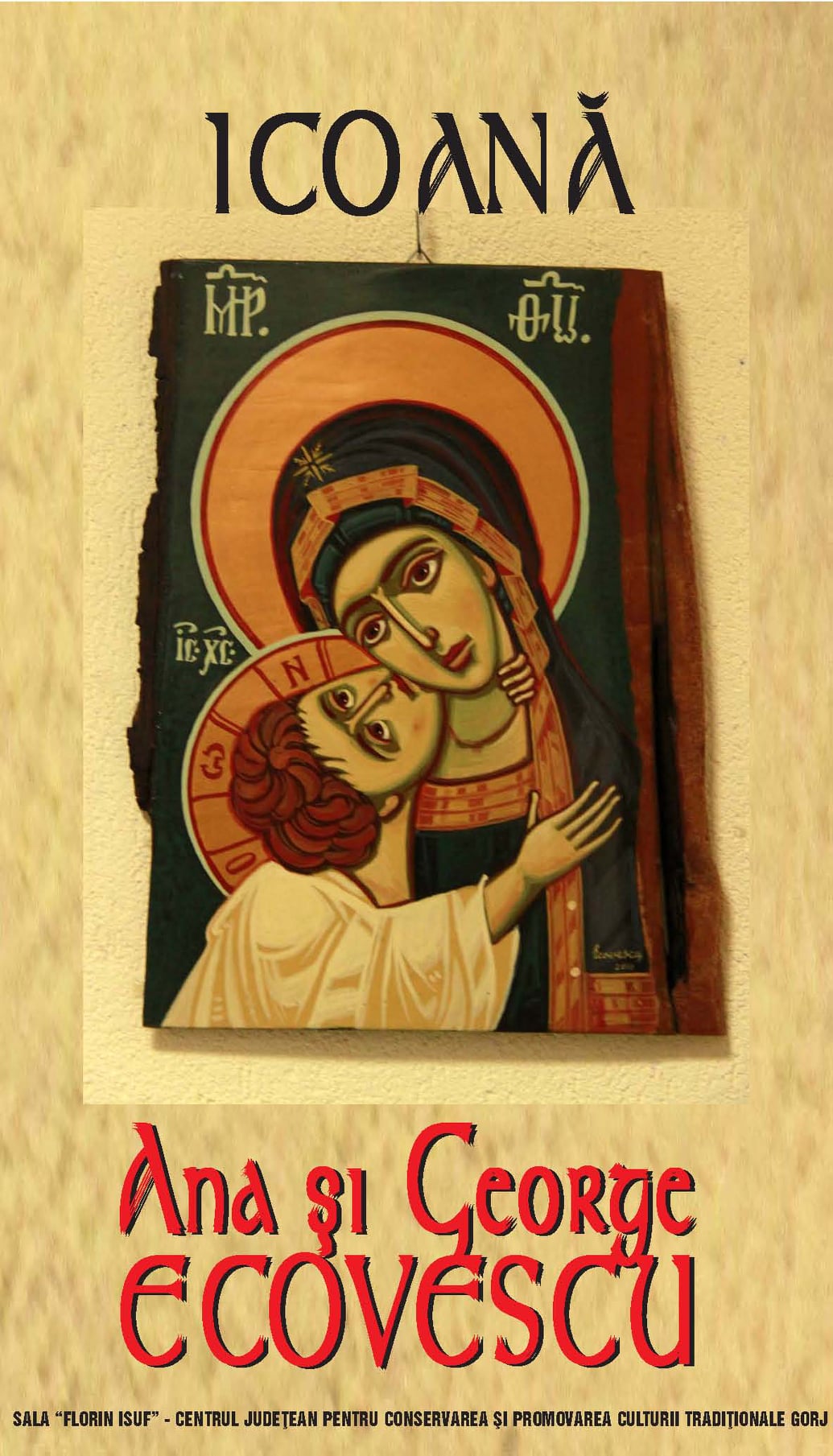 Sala ”Florin Isuf” a Centrului Județean pentru Conservarea și Promovarea Culturii Tradiționale Gorj va găzdui, până la sfârșitul acestui an, o expoziție de icoane semnate de Ana și George Ecovescu. Cei interesați pot admira lucrările din cadrul expoziției pe pagina de Facebook a CJCPCT Gorj.
