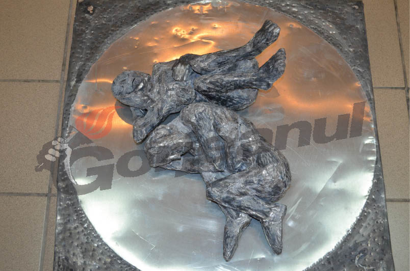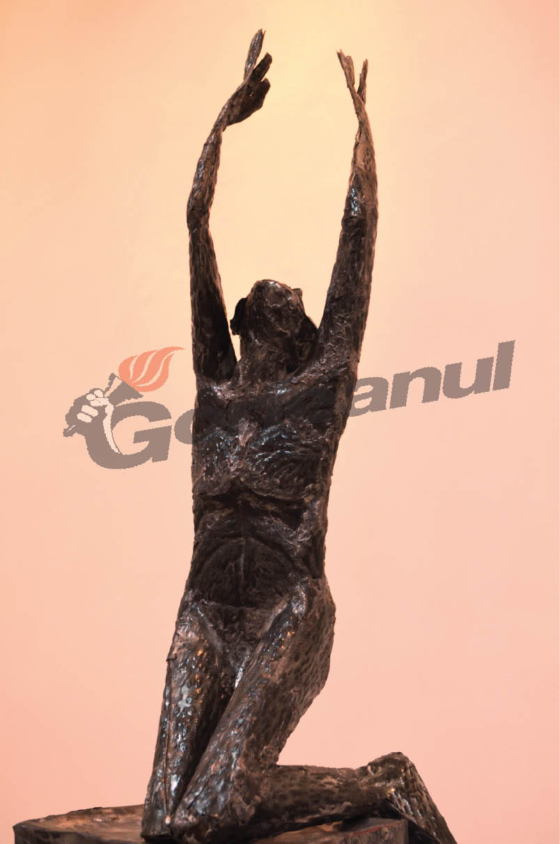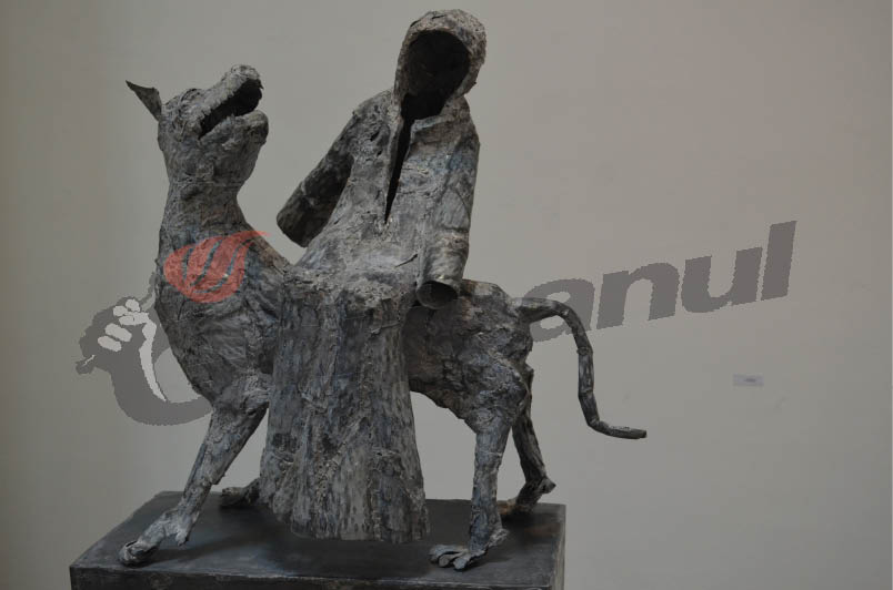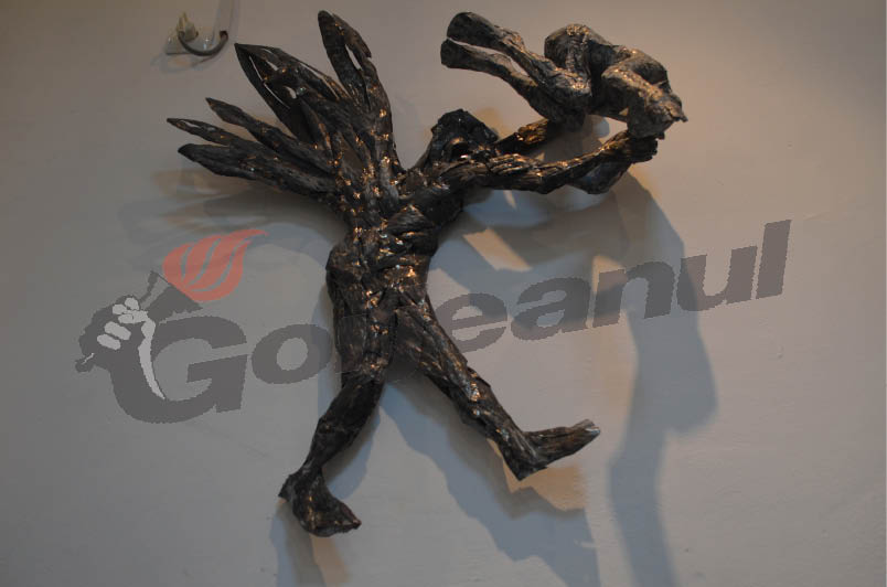 Grupurile sculpturale ale artistului prezintă de cele mai multe ori o luptă a personajelor, fie că cu ele însele, fie cu alte personaje, fie cu natura însăşi”, a declarat Mihaela Cristea, curatorul expoziţiei. Şi materialul din care au fost realizate lucrările incluse în această expoziţie – tabla – a fost ales special, spune artistul, pentru că poartă amprenta timpului şi poate fi modelată în aşa fel încât să vorbească despre sentimentele omului. „Dacă ar fi după mine, cred că un material ideal pentru sculptura pe care o fac ar fi lava vulcanică, pentru că de multe ori lucrările par a izvorî dintr-un astfel de loc şi atunci materialul acesta, lava, nu ar face decât să le redea corpul adevărat. Acest lucru nu se poate însă şi atunci lucrez cu ce găsesc în jur. M-am oprit la tablă pentru tabla veche, uzată, ruptă de pe garduri, de pe acoperişuri, are o memorie şi memoria aceasta care vorbeşte despre trecerile din lume mi-a plăcut să o folosesc în lucrările mele. Am folosit şi tablă nouă, cumpărată de la magazin, pentru că are anumite calităţi.