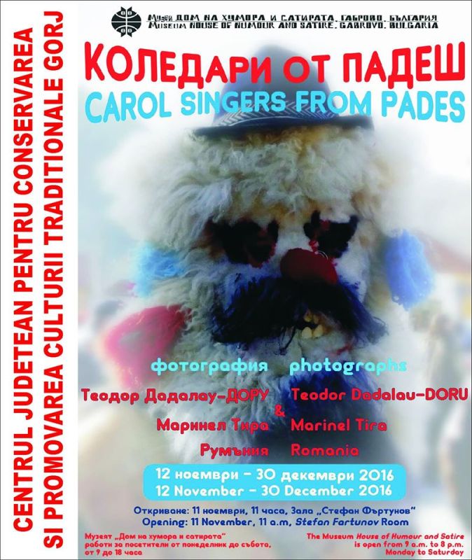 Centrul Județean pentru Conservarea și Promovarea Culturii Tradiționale (CJCPCT) Gorj organizează în perioada 11 noiembrie – 11 decembrie 2016, la Gabrovo, în Bulgaria, expoziția de fotografie ”Pițărăii din Padeș”. Expoziția cuprinde 80 de fotografii realizate de artiștii fotografi Teodor Dădălău și Marinel Tira și va fi vernisată pe 11 noiembrie, la Muzeul Mondial al Umorului și Satirei de la Gabrovo. ”Cele 80 de fotografii realizate de artiștii fotografi Teodor Dădălău și Marinel Tira surprind în esență obiceiul Pițărăilor cu măști din Cloșani, Padeș. Sunt evidențiate atât elementele de artă tradițională, cât și aspectul satirizant al măștilor, fiecare, unică în felul său, fiind asociată unei anumite tipologii, mentalități sau comportament uman.